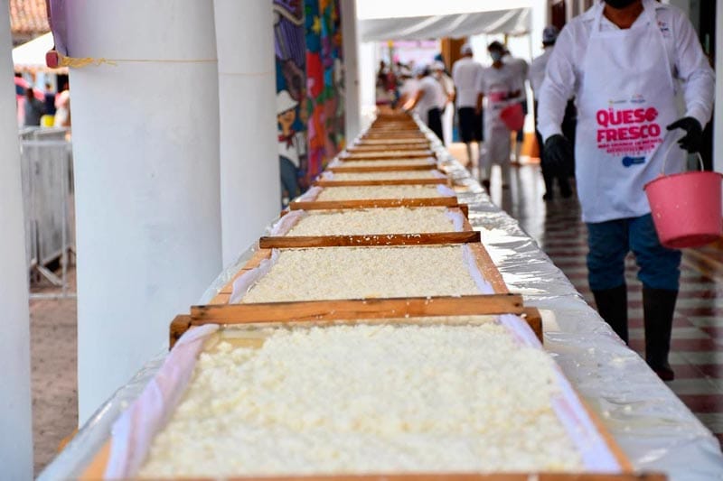“El Queso Fresco más grande de México” elaborado en el municipio de Tlalixcoyan rompió un nuevo récord al alcanzar una longitud de 46 metros lineales, superando un metro más que el año pasado.
