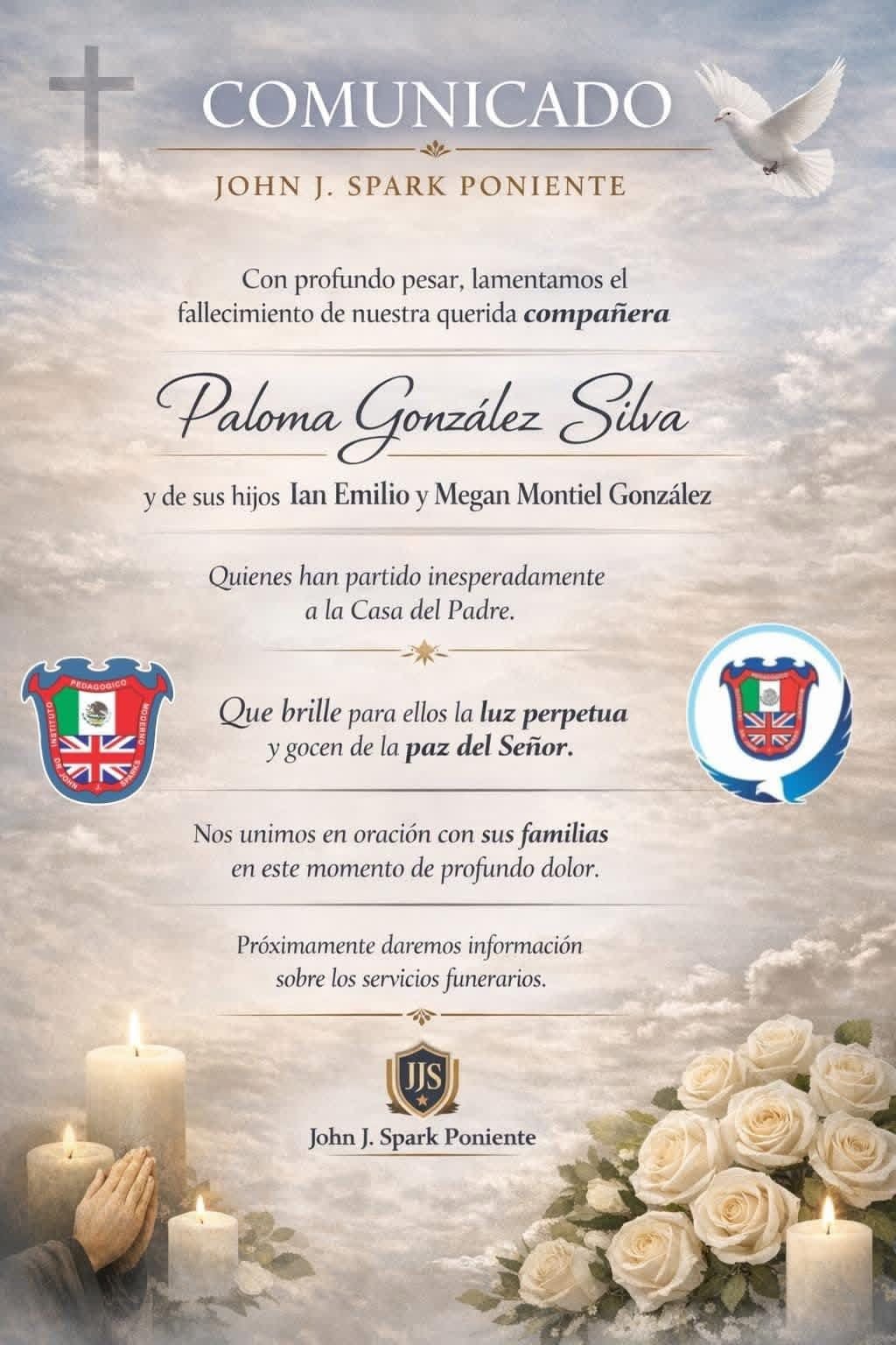 En cuanto se tenga información sobre los servicios funerarios, será compartida oportunamente por este medio", se lee en el mensaje.