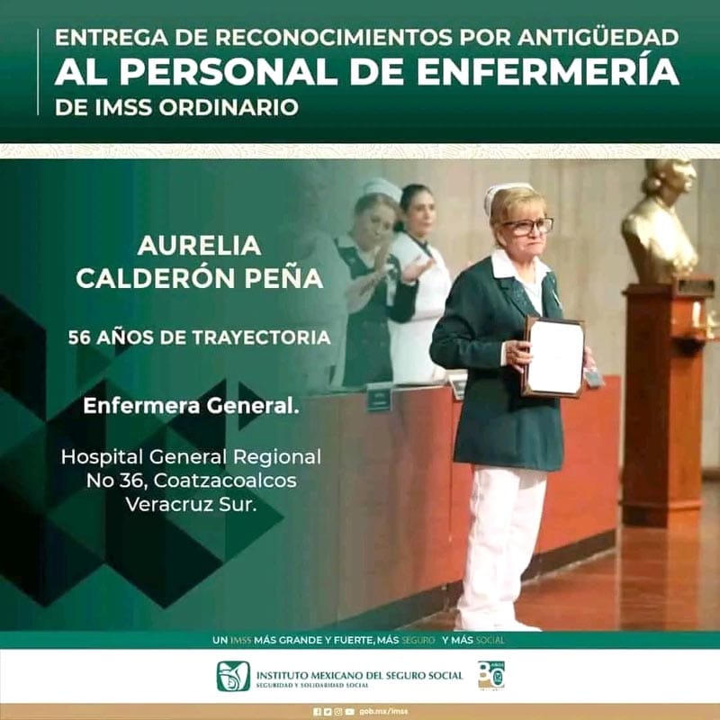 La enfermera Aurelia Calderón Peña tuvo seis décadas de servicio, dedicó casi 60 años de su vida al IMSS principalmente en el hospital general número 36 en el municipio sureño.