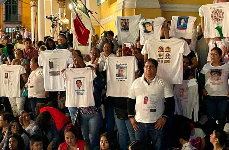Horas antes, estas personas se habían plantado en las escalinatas de la Catedral de Xalapa con fotografías de sus familiares y vestían camisetas blancas.