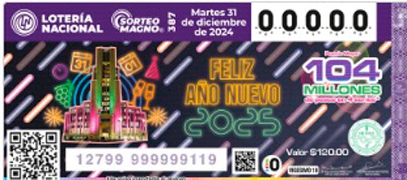 Luego siguió el de Feliz Año nuevo 2025 con 104 millones, se dio a conocer que hubo un premio ganador de 26 millones al número 24 510 cayó en Nuevo Laredo, Tamaulipas, otro premio de 2 millones 500 mil al 51 544 en Tampico, también Tamaulipas.