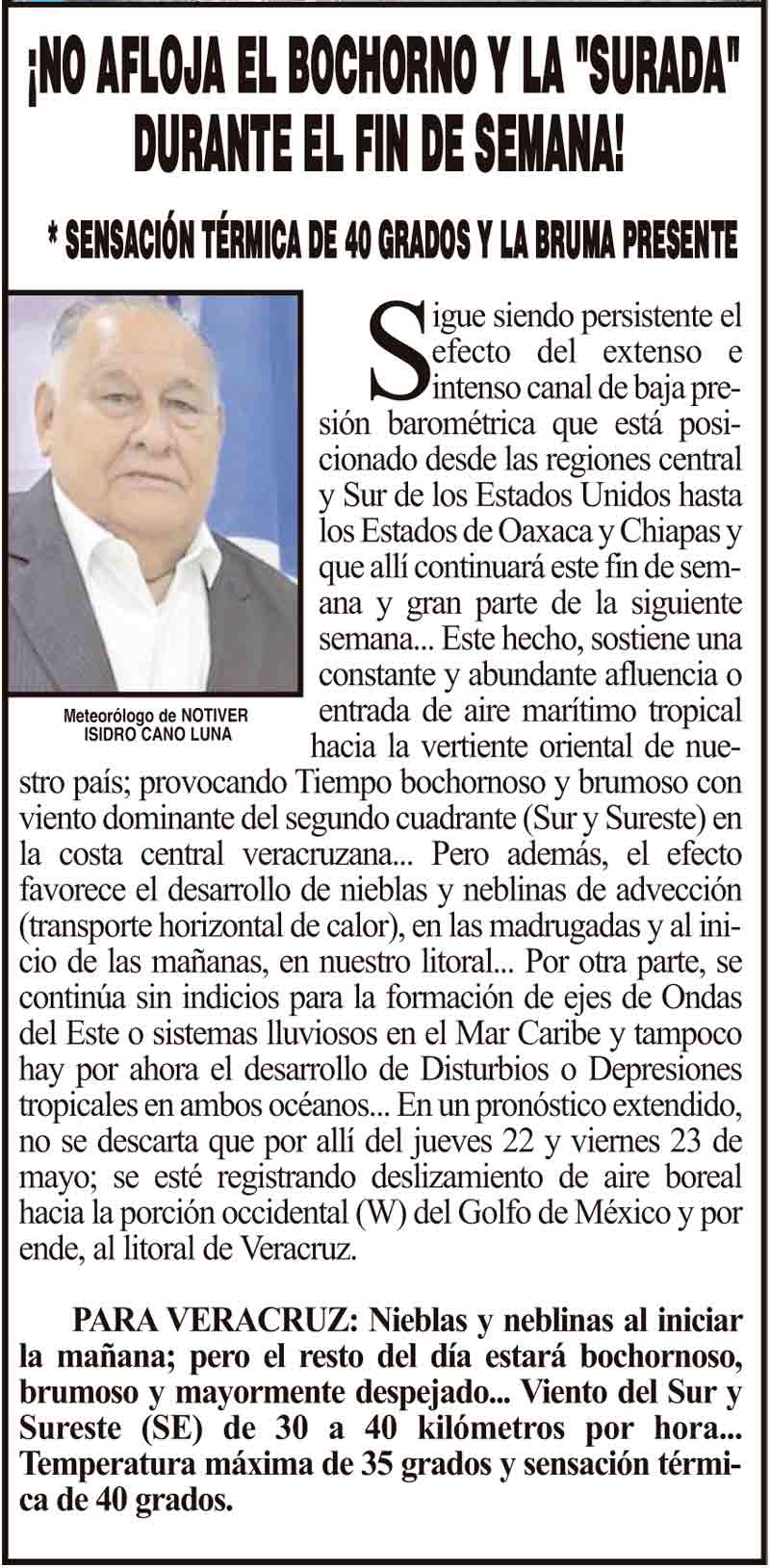 PRIMERA ¡NO AFLOJA EL BOCHORNO Y LA "SURADA" DURANTE EL FIN DE SEMANA! - *SENSACIÓN TÉRMICA DE 40 GRADOS Y LA BRUMA PRESENTE 16 mayo 2025 Más Noticias LA PORTADA - JUEVES 23 DE ABRIL 2026 ¡TENDRÁ LA MARINA SÚPER BARCOS! ¡CLONAN CARTEL DE RECOMPENSA DE LA FGE! NOTI-MEME | - LOS OTROS CARTELES! ¡HOMENAJE A FIDEL Y ROSITA! - DEL PRI ¡PASAN LISTA LOS ALCALDES! - *En la Heroica Escuela Naval, ahí estuvieron Maryjose, Beto Cobos y Rosa María ¡ISLEÑO SE QUEDÓ CON CAMIONETÓN! - *Capibara no sabía, pero sí la esposa del director de Tránsito, Andrés Delgado ¡EXIGEN JUSTICIA! - LA COMUNIDAD MÉDICA LOS CARTONES ¡LOS VAN A INVESTIGAR! - *A policías estatales que dispararon a la doctora