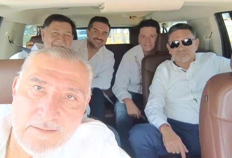 En la imagen, se observa a los tres senadores a bordo de un vehículo en Tuxtla Gutiérrez, Chiapas, a donde viajaron para asistir a la toma de posesión de Eduardo Ramírez Aguilar como nuevo gobernador de Oaxaca.
