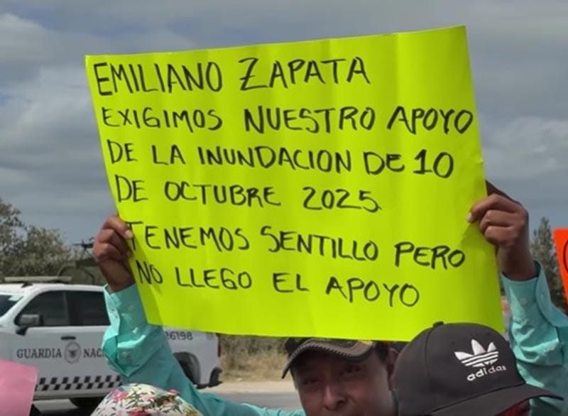 Los inconformes se concentraron con la intención de ser escuchados por la mandataria federal, señalando que, a más de cuatro meses del desastre, no han recibido los recursos destinados para reponer enseres domésticos, pérdidas agrícolas y daños en viviendas.