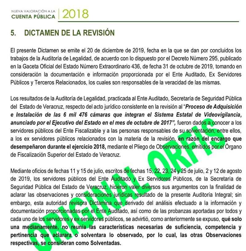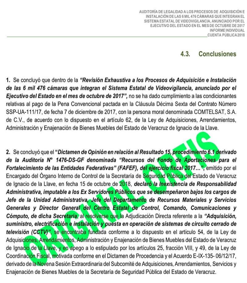 Además, el Orfis, tras el análisis del sistema de videovigilancia comprobó que se adquirieron e instalaron 6,476 cámaras, concluyendo que no hubo ninguna irregularidad.
