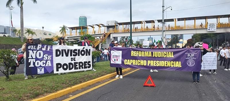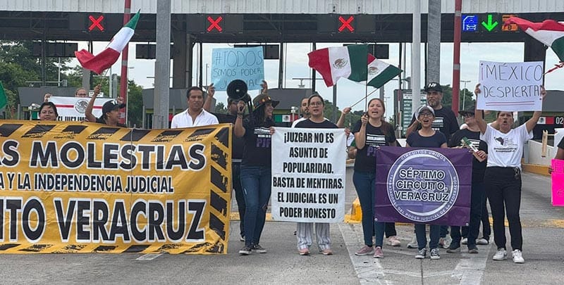 Luego de que, en varios estados del país, se registraran movilizaciones como protesta por la entrada en vigor de dicha Reforma, en Veracruz trabajadores, jueces y magistrados se congregaron durante este mediodía en la autopista.