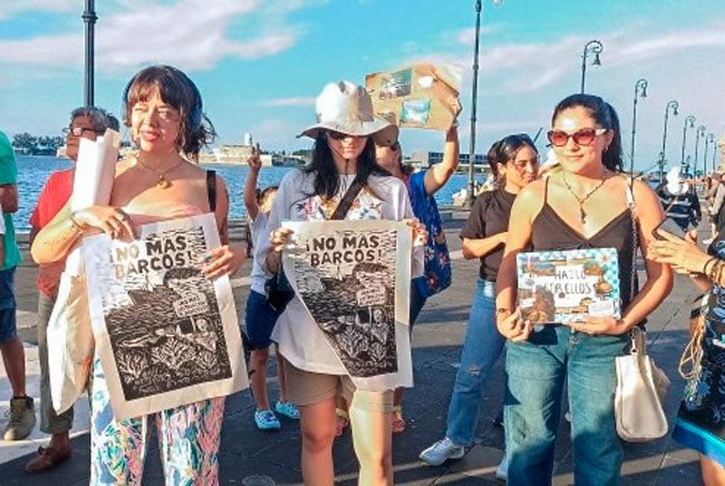 Durante la manifestación los ambientalistas recordaron que la playa Norte se perdió por la ampliación del puerto de Veracruz y que no estarán dispuestos esta vez en que se afecte al arrecife La Gallega con la construcción de la escollera sur, ya que se cometerá un ecocidio.