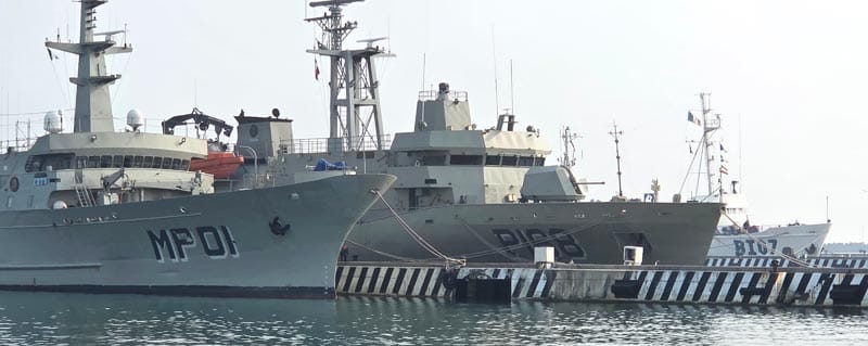 El buque de combate litoral USS Wichita LCS-13, se encuentra aún en aguas nacionales, a la vista en las plataformas cerca del Puerto de Veracruz.