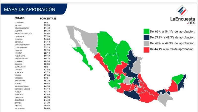 Esta cifra coloca a la mandataria veracruzana en la posición número 27 del ranking nacional, situando al estado en el bloque de entidades con menor respaldo popular, junto a demarcaciones como Oaxaca, Sinaloa y Michoacán.