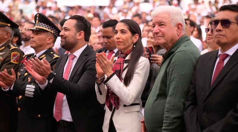Cabe mencionar que en la plaza se colocó un escenario grande, se instalaron vallas de seguridad y sillas para las y los invitados especiales.