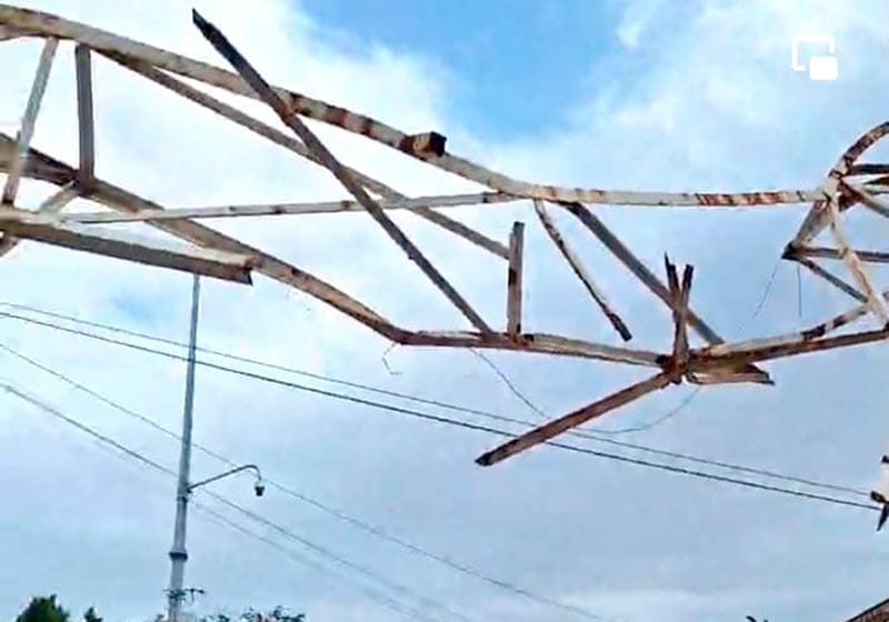 El nortazo de 90 kilómetros que azoró la conurbación este lunes 12 de febrero, causó que la estructura metálica que se encuentra en la entrada o salida del Mercado Malibrán estuviera cerca de desplomarse.