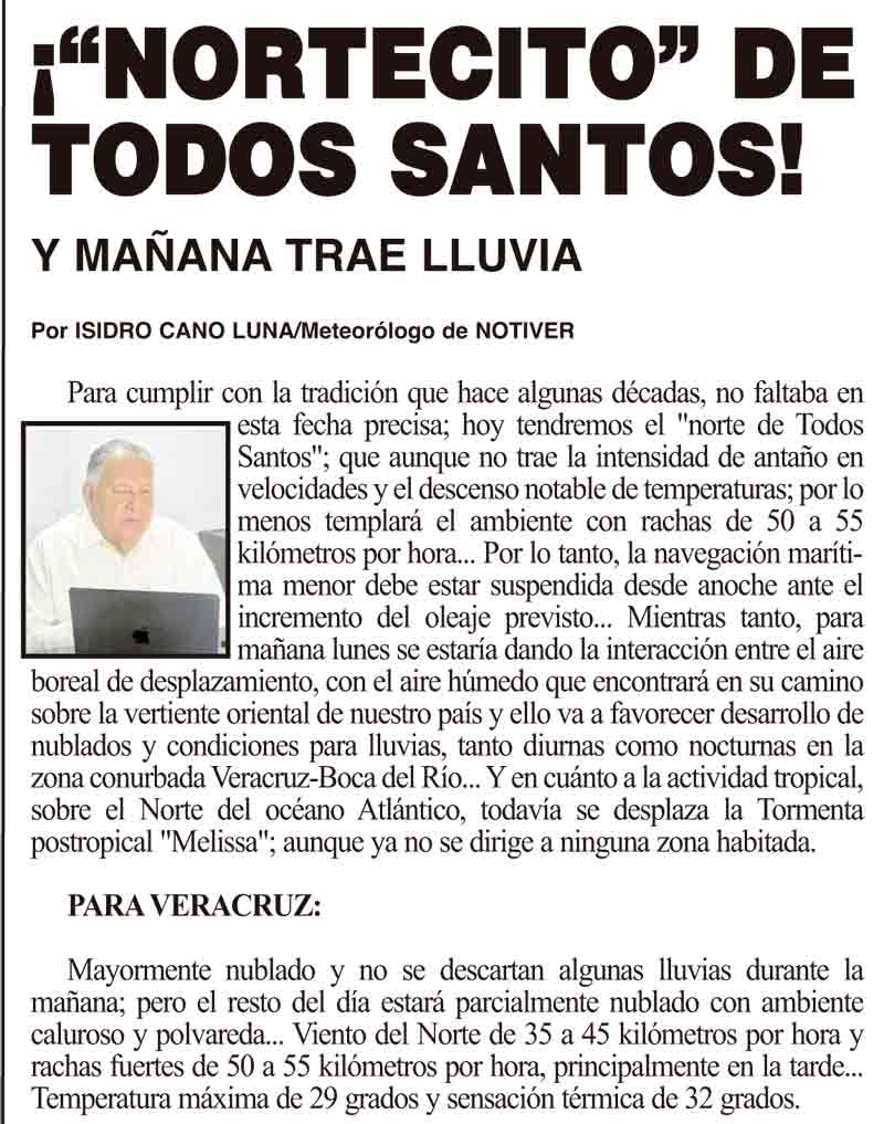 PRIMERA ¡“NORTECITO” DE TODOS SANTOS! - *Y MAÑANA TRAE LLUVIA 2 noviembre 2025 Más Noticias ¡TRIPLE FEMINICIDIO! - TERROR EN TLAPACOYAN ¡A SACAR SUÉTERES! - *Alertan por el Frente Frío 18 ¡HABEMUS CORTE! - CARNAVAL 2026 ¡CLAUSURAN GRANJAS AVÍCOLAS! - *En Lerdo por falta de permisos 2025 ¡ATAQUE ARMADO A TRÁILER! - *No era de los Junior's Klan LOS CARTONES ¡CONMEMORARÁN EL ANIVERSARIO 112 DEL NATALICIO DEL “PIRATA” FUENTE! ¡PEGARÁ NORTAZO! - *Traerá rachas de 85 a 110 kph ¡SERÁ SALMA EMBAJADORA! - DEL MUNDIAL FIFA NOTI-MEME | - YA TIENES TU STARFUCKS?
