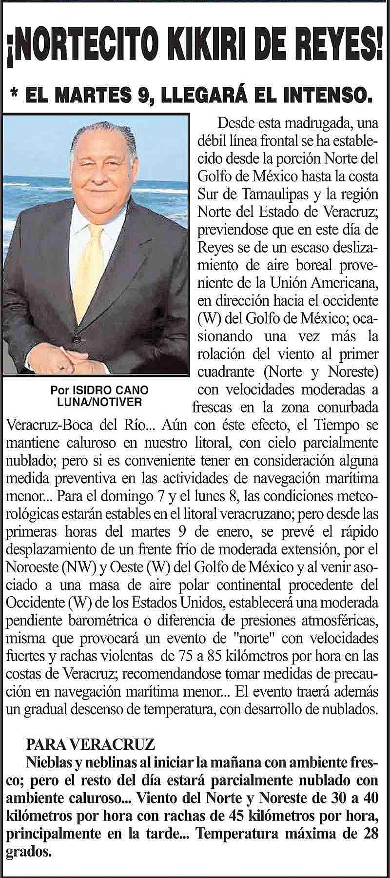 PRIMERA ¡NORTECITO KIKIRI DE REYES! * EL MARTES 9, LLEGARÁ EL INTENSO. 6 enero 2024 Más Noticias ¡YA HAY TERNA! - RAÚL PEIMBERT EN LA LISTA ¡“CEMENTERIO”! - DE ULÚAS ¡INAUGURA PATY OTRA CALLE! ¡NO LE CREYERON! - Y LO BUSCAN NOTI-MEME | - ECOS DEL INFORME! ¡VERÓNICA VA CON NAHLE! - Y AL CONGRESO ¡“FAST TRACK”! - *Mientras el Mariner salía y entraba de Pajaritos en Coatzacoalcos ¡OPERATIVO LUPE-REYES! ¡MANDAN LA BILLETIZA! - *Corea manda 150 mil dólares ¡CRISTINA GANA LA ELECCIÓN!