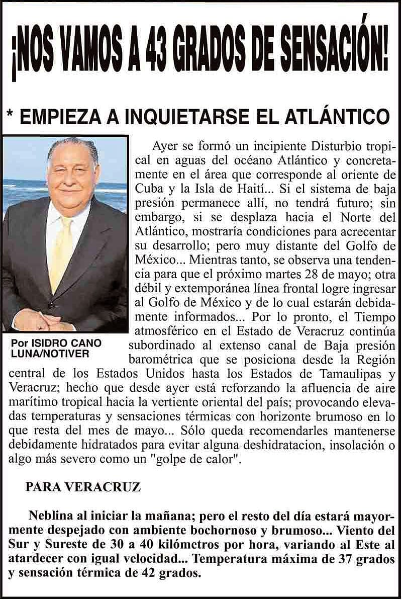 PRIMERA ¡NOS VAMOS A 43 GRADOS DE SENSACIÓN! - *EMPIEZA A INQUIETARSE EL ATLÁNTICO 24 mayo 2024 Más Noticias ¡YA HAY TERNA! - RAÚL PEIMBERT EN LA LISTA ¡“CEMENTERIO”! - DE ULÚAS ¡INAUGURA PATY OTRA CALLE! ¡NO LE CREYERON! - Y LO BUSCAN NOTI-MEME | - ECOS DEL INFORME! ¡VERÓNICA VA CON NAHLE! - Y AL CONGRESO ¡“FAST TRACK”! - *Mientras el Mariner salía y entraba de Pajaritos en Coatzacoalcos ¡OPERATIVO LUPE-REYES! ¡MANDAN LA BILLETIZA! - *Corea manda 150 mil dólares ¡CRISTINA GANA LA ELECCIÓN!