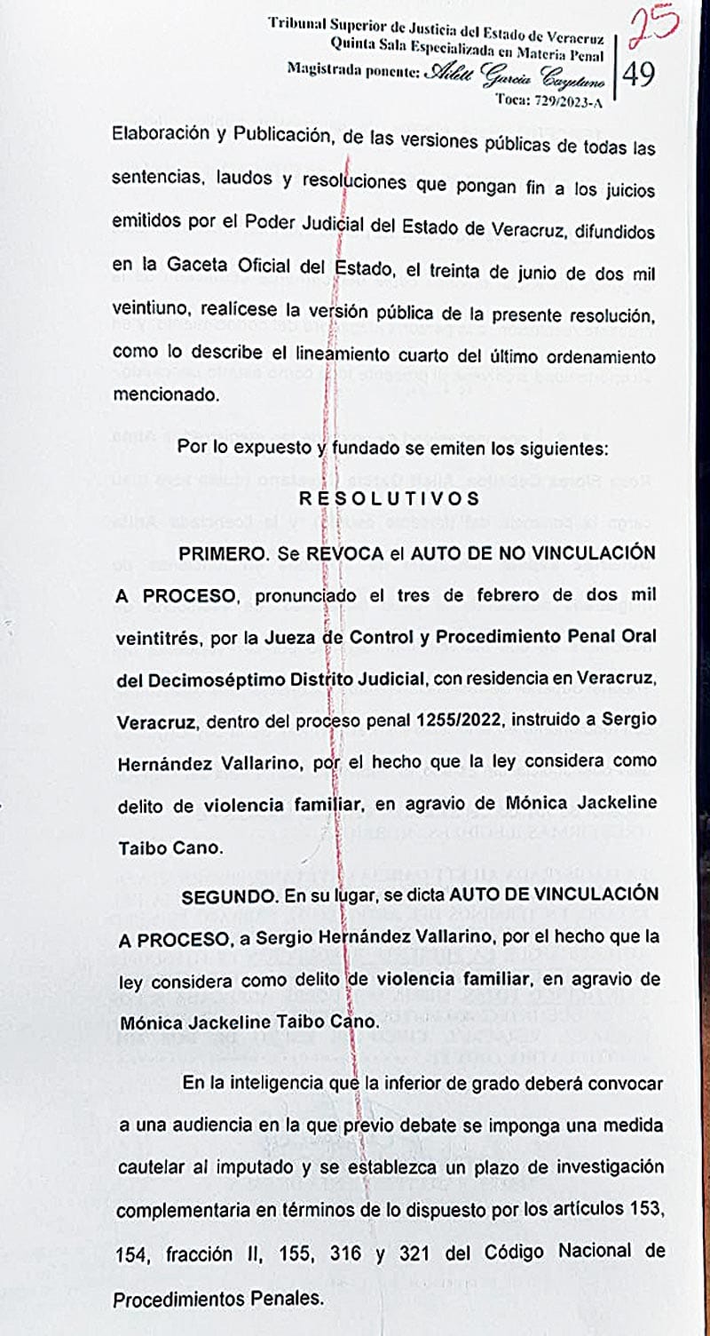 Trascendió que la Quinta Sala Especializada en materia penal del Tribunal Superior de Justicia de Veracruz, ordenó que se vincule a proceso al notario público Sergio Hernández Villarino, denunciado por su ex esposa, Mónica Jacqueline Taibo Cano por violencia familiar.