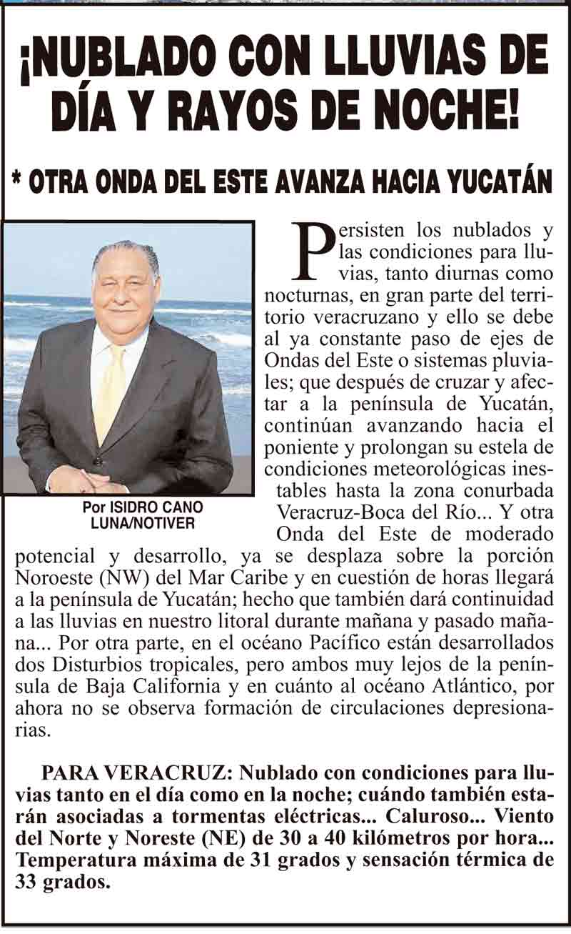 PRIMERA ¡NUBLADO CON LLUVIAS DE DÍA Y RAYOS DE NOCHE! - *OTRA ONDA DEL ESTE AVANZA HACIA YUCATÁN 22 julio 2024 Más Noticias ¡BLOQUEO DEL SECTOR SALUD EN PLAN DE RÍO! ¡TRAGEDIA EN LA AUTOPISTA VERACRUZ–XALAPA! NOTI-MEME | - YA LLEGÓ LA RAMA! LA ENCUESTA | - YA VIENE! ¡RECONOCIMIENTO A DIRIGENTE DE TAXISTAS! ¡LE VAN A ENTRAR! - *Claudia ordena a Nahle ¡QUIEREN MANDOS DE LA MARINA! - EN LAS POLICÍAS MUNICIPALES ¡ATACA EL VIRUS COXSACKIE, HAY 71 CASOS! - *Con mayor incidencia en 2025 y casos concentrados en Xalapa y Veracruz LOS CARTONES ¡SALMA SACA VIDEO! - RETEMUNDIAL...