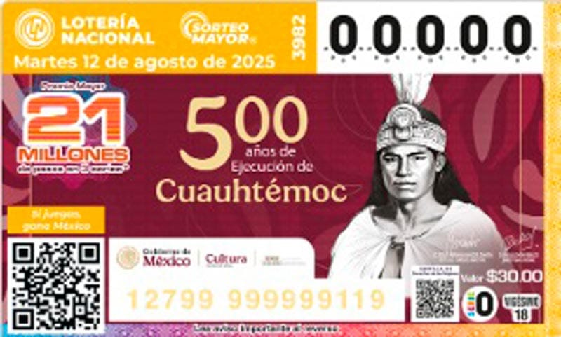 El sorteo se llevó a cabo la noche del martes 12 de agosto y fue dedicado a los 500 años de la Ejecución de Cuauhtémoc.