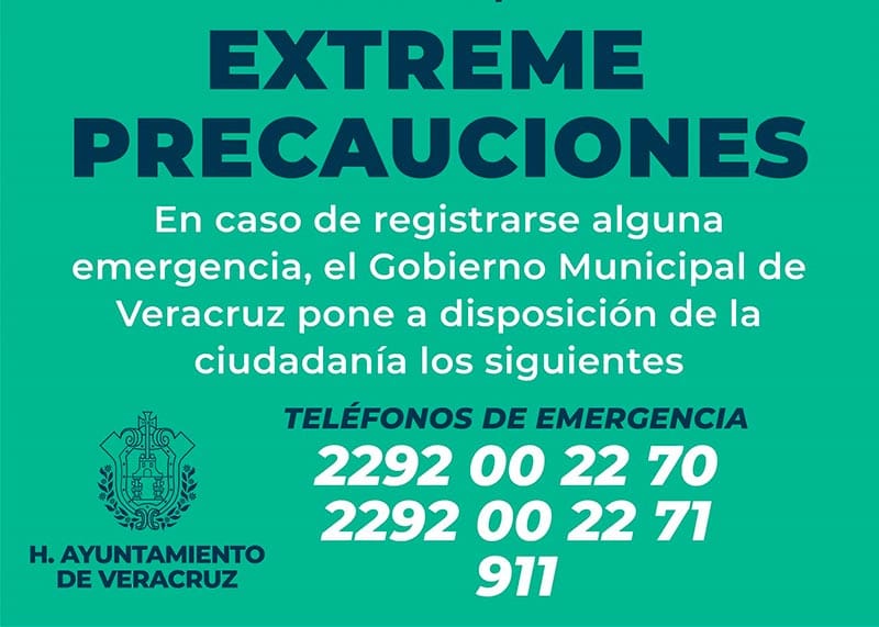 En caso de registrarse alguna emergencia, el Gobierno Municipal de Veracruz pone a disposición de la ciudadanía los siguientes teléfonos 2292002270, 2292002271 y el 911.