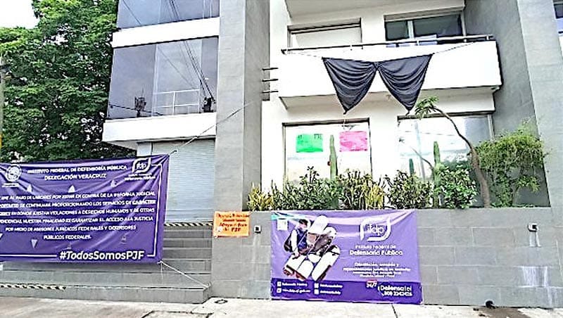 Personal del Instituto Federal de la Defensoría Pública con residencia en la ciudad de Veracruz suspendieron labores en las instalaciones que se ubican en la esquina de 16 de Septiembre e Ignacio López Rayón en protesta contra la reforma judicial.