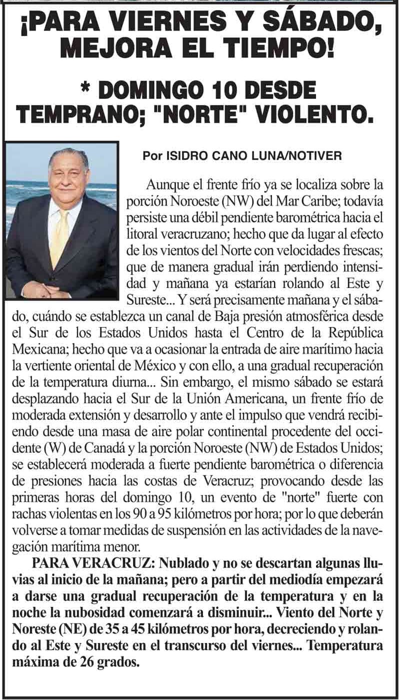 PRIMERA ¡PARA VIERNES Y SÁBADO, MEJORA EL TIEMPO! * DOMINGO 10 DESDE TEMPRANO; "NORTE" VIOLENTO. 7 diciembre 2023 Más Noticias ¡YA TIENE PUENTAZO EL SEGURO! ¡LA CARTELERA! | LA ÚLTIMA Y NOS VAMOS - De vacaciones andamos en Papantla, Veracruz, y en días pasados escuchamos dos charlas sobre los exploradores y la iconografía del basamento de los Nichos y El Tajín, en el Museo Teodoro Cano… ¡MAESTROS TENDRÁN BONO Y AGUINALDO! ¡LES MOCHAN EL AGUA A RÍO MEDIO! - *Por mantenimiento ¡SALE HUMO DE LAS ALCANTARILLAS! - *Explosiones en Jardines de Mocambo ¡LEY GARROTE! - *Paguen ya impuestos o van multas ¡YA TIENE MURAL TITO NIEVES! ¡PRESENTA LOTERÍA NACIONAL EL ÁLBUM DEL MUNDIAL! LOS CARTONES ¡PREVENCIONES PARA EVITAR EL INCREMENTO DE LAS INFECCIONES RESPIRATORIAS AGUADAS!