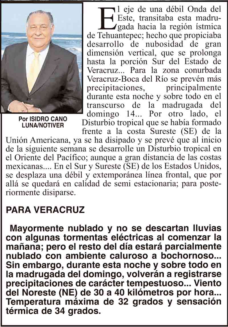 PRIMERA PARCIALMENTE NUBLADO CON AMBIENTE CALUROSO A BOCHORNOSO EL RESTO DEL DÍA... - *TEMPERATURA MÁXIMA DE 32 GRADOS 13 julio 2024 Más Noticias ¡YA HAY TERNA! - RAÚL PEIMBERT EN LA LISTA ¡“CEMENTERIO”! - DE ULÚAS ¡INAUGURA PATY OTRA CALLE! ¡NO LE CREYERON! - Y LO BUSCAN NOTI-MEME | - ECOS DEL INFORME! ¡VERÓNICA VA CON NAHLE! - Y AL CONGRESO ¡“FAST TRACK”! - *Mientras el Mariner salía y entraba de Pajaritos en Coatzacoalcos ¡OPERATIVO LUPE-REYES! ¡MANDAN LA BILLETIZA! - *Corea manda 150 mil dólares ¡CRISTINA GANA LA ELECCIÓN!