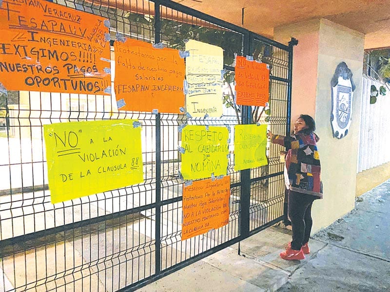 La delegada seccional del FESAPAUV en FACICO, condeno la situación que por segunda vez consecutiva se presenta en la máxima cada de estudios del estado, desde que llego el Rector Martin Aguilar Sanchez, la primera vez fue el 13 de diciembre pasado, violentando la clausura 88 del CCT vigente entre la UV y el FESAPAUV.