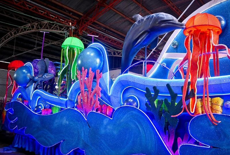 “Quiero darles una probadita de la belleza de nuestros carros. Miren nada más estas figuras, el tamaño, los colores, la iluminación. En la noche se van a ver espectaculares”, expresó la alcaldesa mientras mostraba detalles de carros que simulan el mar, con medusas iluminadas y arreglos florales.