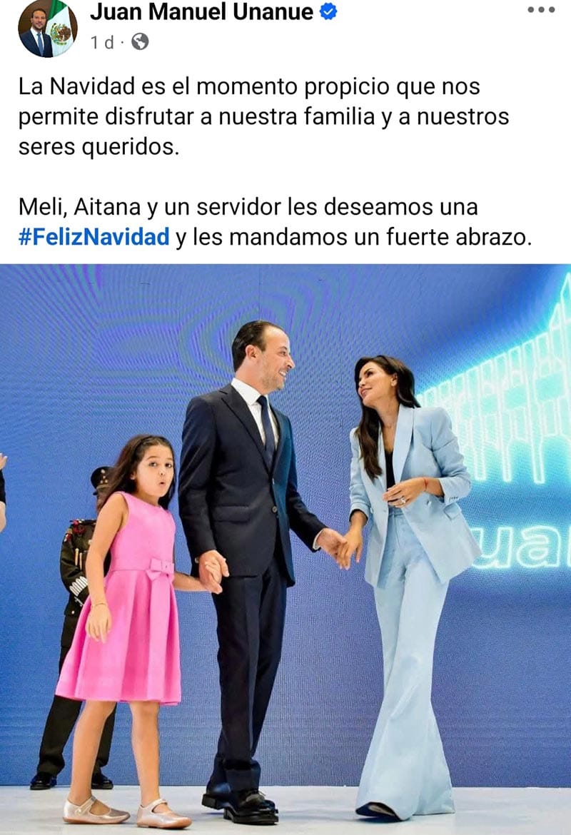 “La Navidad es el momento propicio que nos permite disfrutar a nuestra familia y a nuestros seres queridos”, afirmó el munícipe... Meli, Aitana y un servidor les deseamos una Feliz Navidad y les mandamos un fuerte abrazo", señaló en su anuncio navideño.