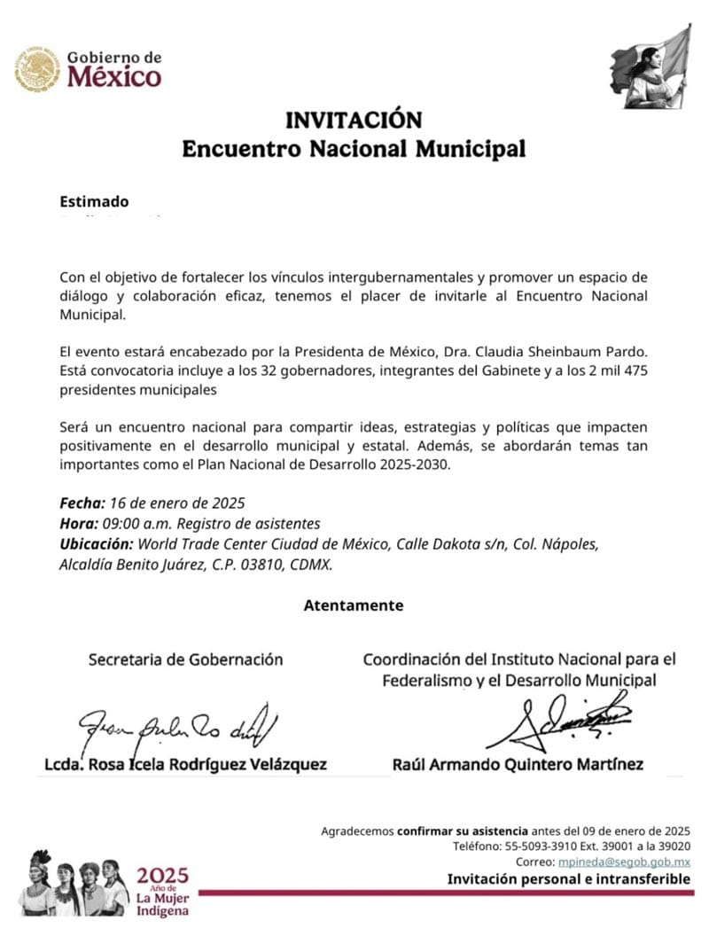 La mandataria calificó el encuentro como histórico, único, inédito “donde el objetivo de este Encuentro es que trabajemos juntas y juntos, por el bien de sus municipios, por el bien de México”, puntualizó.
