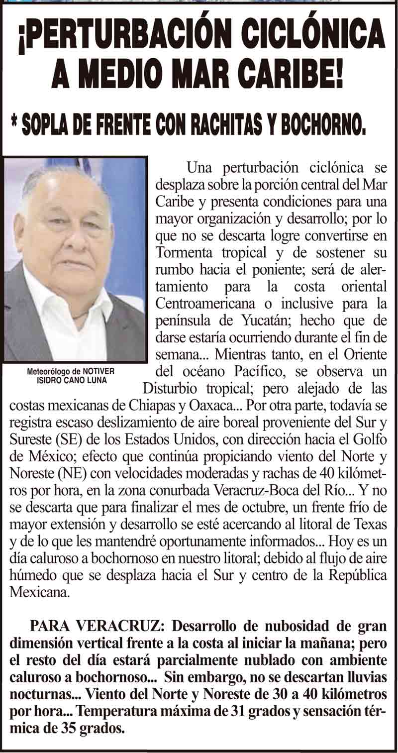 PRIMERA ¡PERTURBACIÓN CICLÓNICA A MEDIO MAR CARIBE! - *SOPLA DE FRENTE CON RACHITAS Y BOCHORNO. 21 octubre 2025 Más Noticias LA ENCUESTA | - ME ESTÁS OYENDO INÚTIL?... ¡CON BAILONGOS QUIEREN AYUDAR A LOS DAMNIFICADOS DEL NORTE! - *El mismo Alor, toca los timbales ¡YA SE LA APROBARON! - REFORMA PARA LA FISCALÍA ESTATAL NOTI-MEME | - ASÍ ESTUVO EL INFORME... ¡MÁS DE 9 MIL MILLONES! - *Eso costaría cancelar en Veracruz al Grupo MAS ¡LE DAN LUZ VERDE! - DESDE GUATEMALA ¡EL CUARTO! ¡Y COM-PA-RE-CIÓ! - ÁNDALE... ¡NO SE VA LISBETH AURELIA! - *Descarta ir a la Fiscalía y que seguirá como magistrada ¡CREAN EL SÚPER MAÍZ!