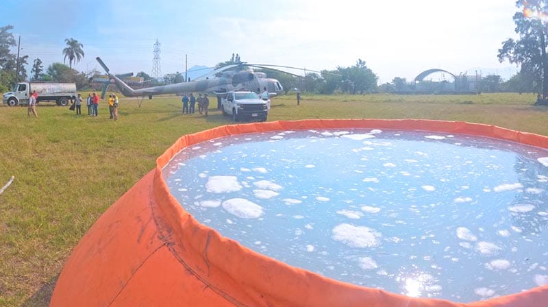*Descarga de más de 37 mil 500 litros de agua, transportada en helibaldes con capacidad de 2 mil 500 litros.