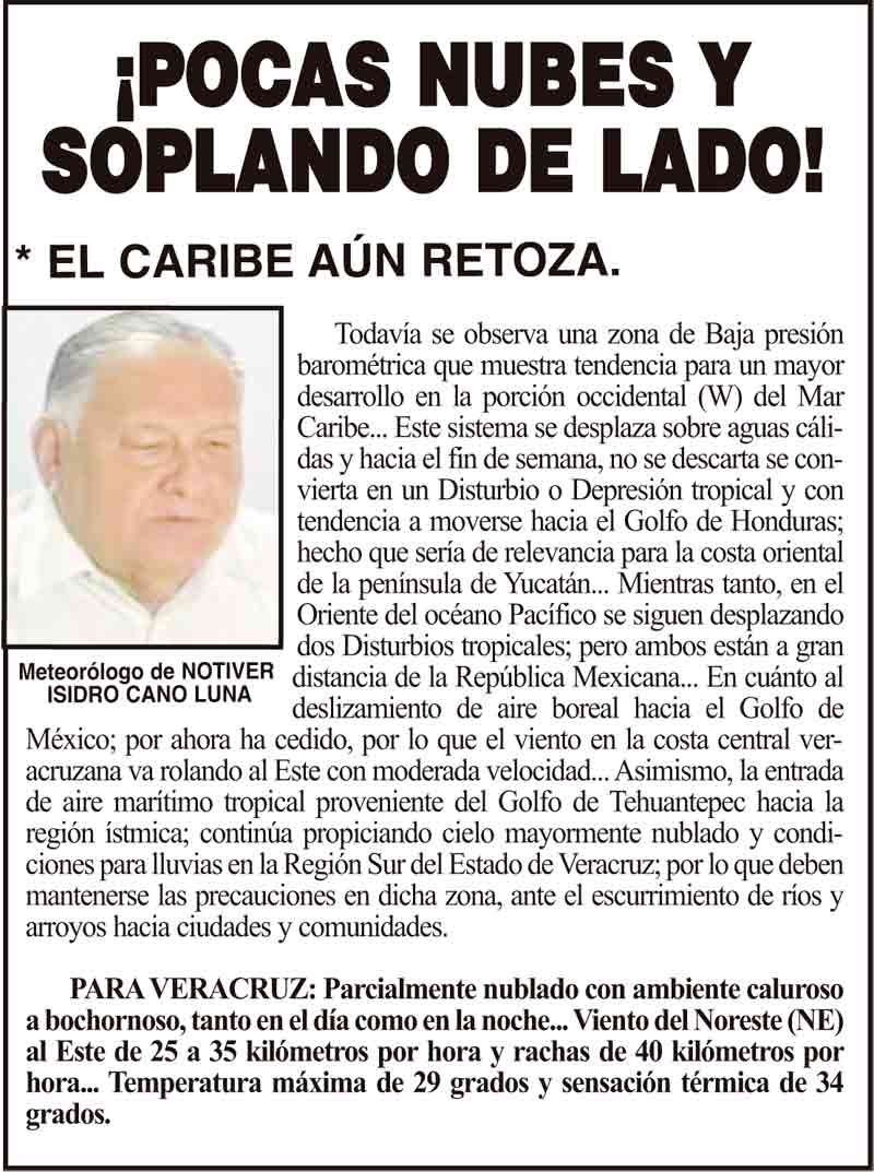 PRIMERA ¡POCAS NUBES Y SOPLANDO DE LADO! - ** EL CARIBE AÚN RETOZA. 30 octubre 2024 Más Noticias ¡TORTURAN A 3 GRINGOS! - EN POZA RICA ¡LE DAN REMOJÓN AL ‘ZOPILOTE’! - MOLES NOTI-MEME | - CUANDO EL VERDE SE EQUIVOCA ¡COSTARON 500 MILLONES! - LOS “ZOPILOTES” ¡CHIQUI-YUNES RECIBE EN EL SENADO A LA SECRETARIA DE ENERGÍA! ¡NO ACTIVARON ALARMA DE ROBO DE BEBÉ! ¡CARNAVAL DE REINAS! - CON LAS MISES ¡SE REPLIEGA LA MARINA DE LAS ZONAS AFECTADAS DE VERACRUZ! LOS CARTONES ¡HUERTA VS. DUARTE! - CHA CHA CHAAANNN...