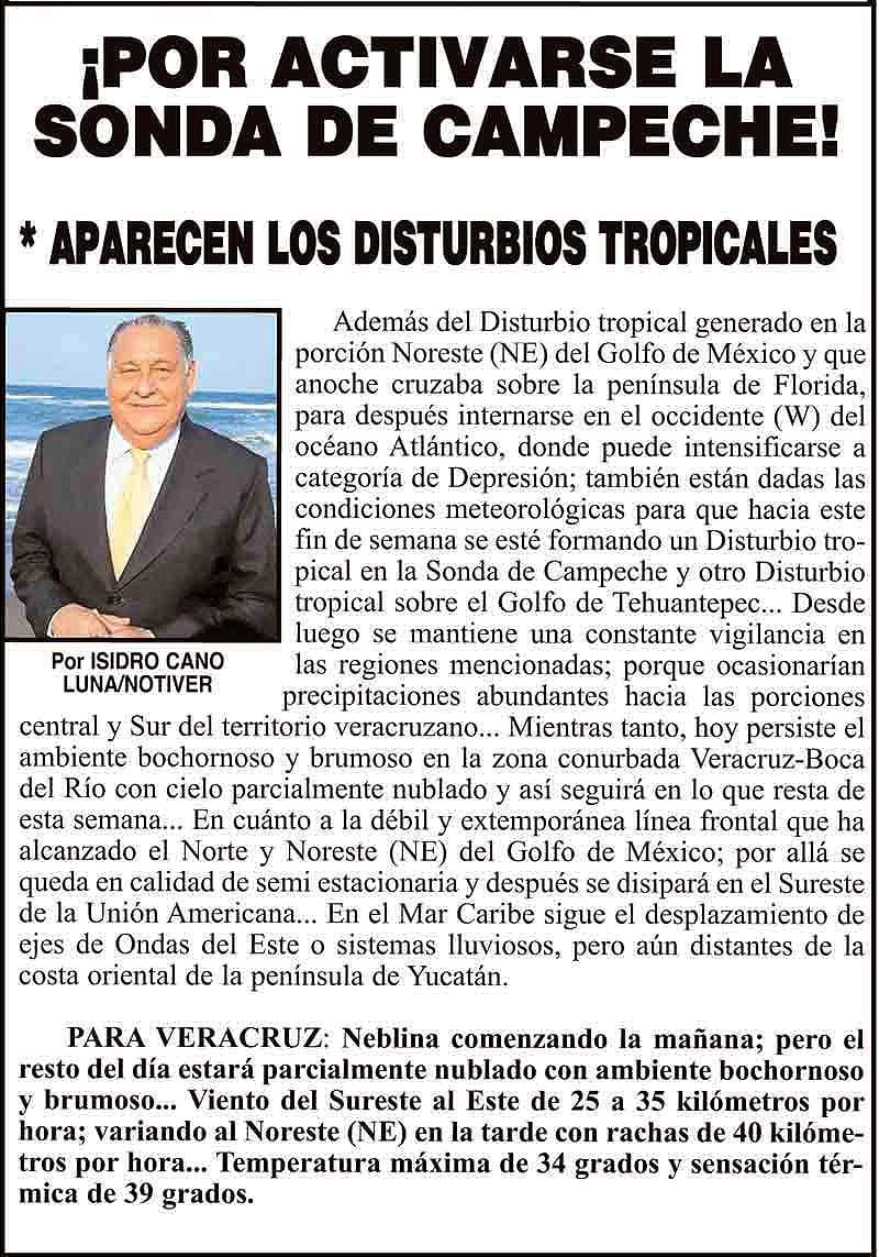 PRIMERA ¡POR ACTIVARSE LA SONDA DE CAMPECHE! - *APARECEN LOS DISTURBIOS TROPICALES 13 junio 2024 Más Noticias ¡YA HAY TERNA! - RAÚL PEIMBERT EN LA LISTA ¡“CEMENTERIO”! - DE ULÚAS ¡INAUGURA PATY OTRA CALLE! ¡NO LE CREYERON! - Y LO BUSCAN NOTI-MEME | - ECOS DEL INFORME! ¡VERÓNICA VA CON NAHLE! - Y AL CONGRESO ¡“FAST TRACK”! - *Mientras el Mariner salía y entraba de Pajaritos en Coatzacoalcos ¡OPERATIVO LUPE-REYES! ¡MANDAN LA BILLETIZA! - *Corea manda 150 mil dólares ¡CRISTINA GANA LA ELECCIÓN!
