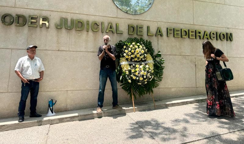 Los quejosos colocaron una corona floral con la leyenda “Aquí yace la República” y anunciaron que continuarán con las protestas.