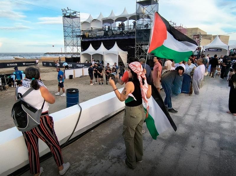 Una protesta a favor de Palestina logró que se interrumpiera la tarde de este jueves, un partido de voleibol internacional de Italia contra Israel, que se realiza en Boca del Río en las playas frente al Foro Boca, dentro del torneo "Challenger".
