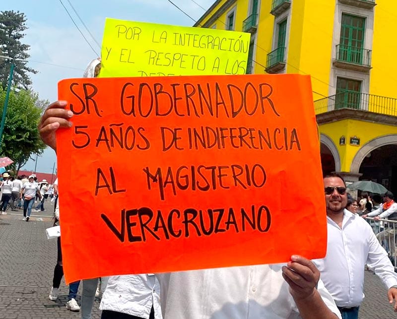 Con una cartulina y de manera solitaria se manifestó la docente de Educación Preescolar, Rubí Yadira Cuevas Cuevas para exigir al Tribunal de Conciliación y Arbitraje que acabe con la “complicidad” que mantiene con el gobierno de Veracruz desde hace 10 años.