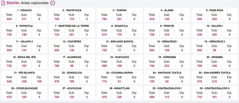 En la casilla 860 básica, le faltan 5 boletas; en la casilla 815 básica también fue entregada sin boletas sobrantes; en la casilla 4842 básica fue enviada sin las boletas de gobernador; la misma situación ocurrió en Minatitlán, Tlacolulan, Tlapacoyan.