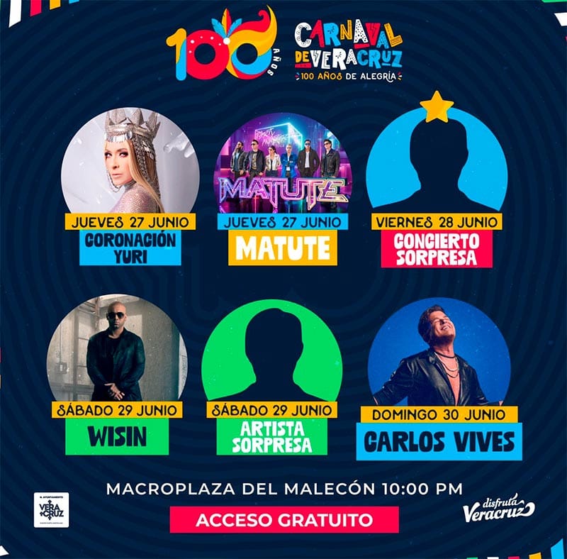 Y serán artistas de talla nacional e internacional los que engalanarán los 100 años de Carnaval con música y baile en los conciertos masivos en la Macroplaza del Malecón.