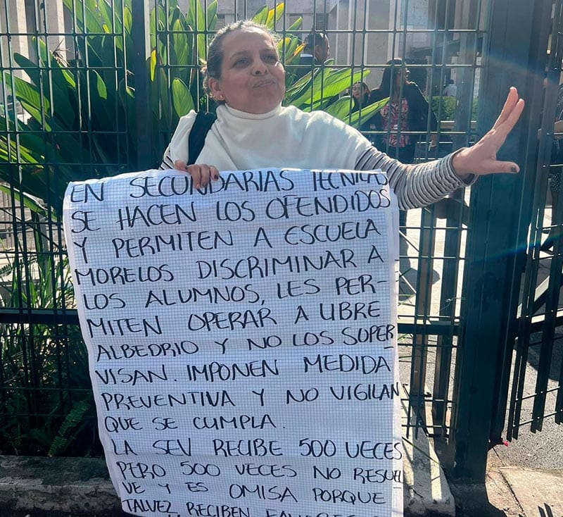“Nos dicen que van a resolver, pero no dan la solución. Nos venimos a manifestar aquí, porque desde hace meses nos han dicho que sí, pero no resuelven nada. Nos quitaron al a maestra Sonia Ramírez, solo para refrescar la zona”.