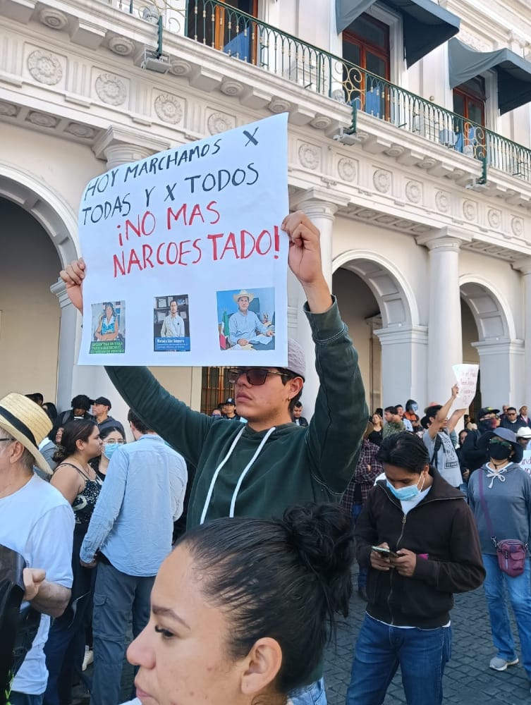 Al grito de “¡Fuera, Morena!”, “Exigimos seguridad. Si no pueden, renuncien”, “No somos iguales, no somos acarreados, no usamos pasamontañas”, “Nos vemos en las elecciones”.
