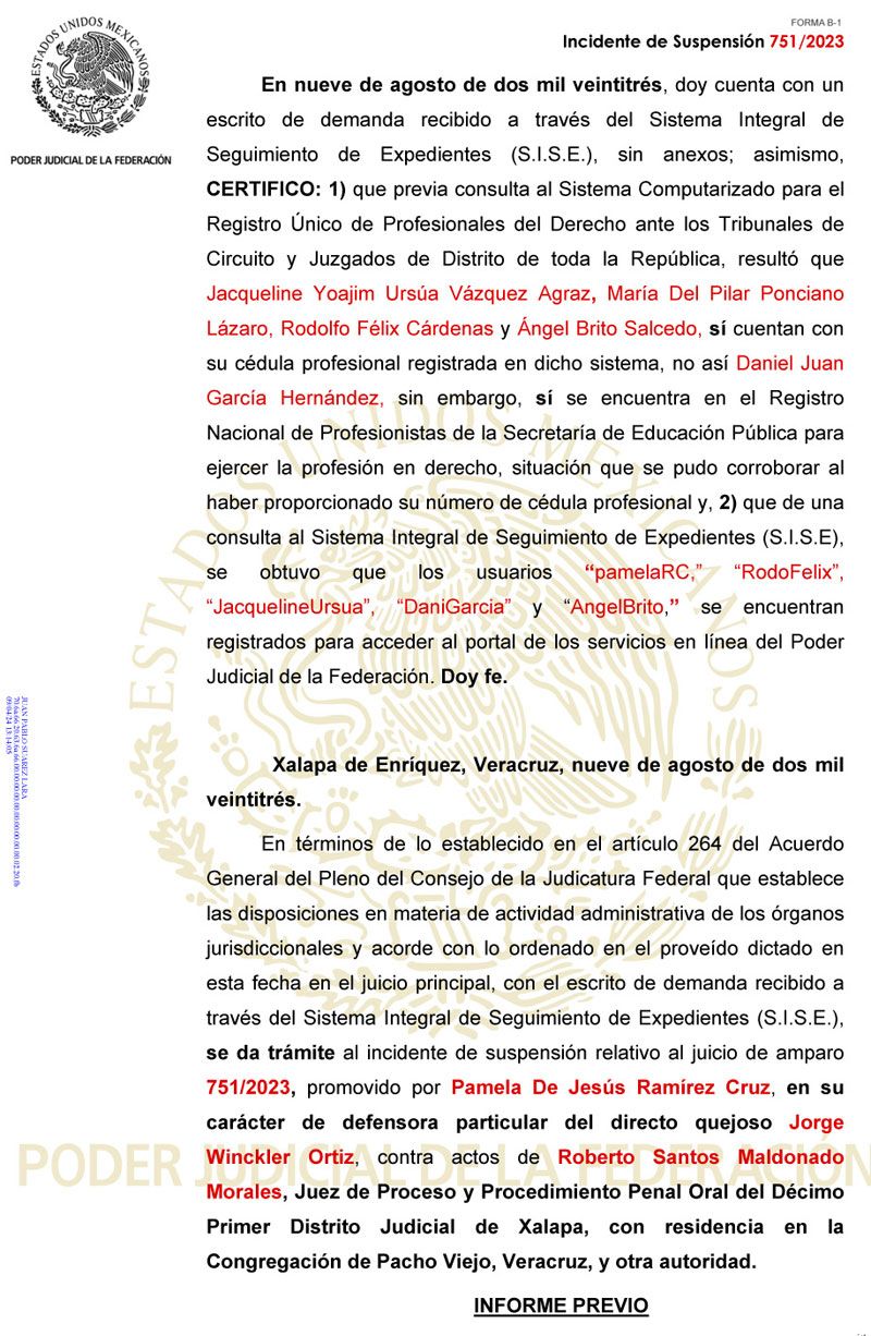 Cabe mencionar que el Juez Federal ordenó cambiar la medida cautelar de Prisión Preventiva Oficiosa al ex fiscal de Veracruz Jorge Winckler Ortiz.