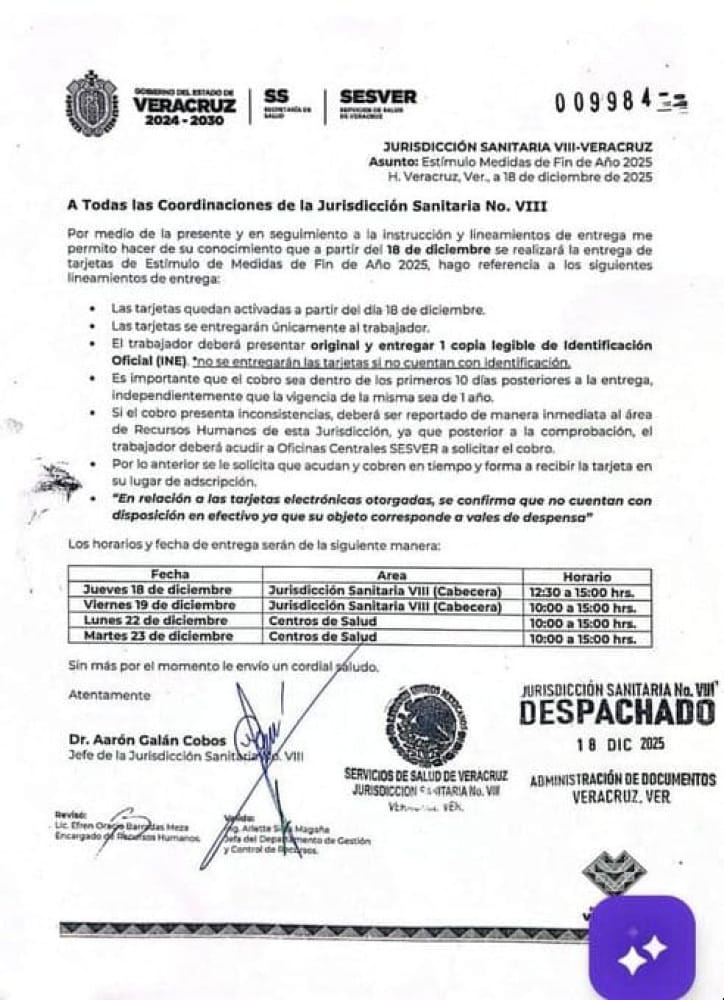 Como en época de Porfirio Díaz, gobierno de Rocío Nahle quiere pagar a trabajadores de la salud sus bonos con vales de Chedraui y Ferche Gas con caducidad de 10 días. El secretario de salud todavía les cierra la puerta en la cara a los quejosos, de notar el camionetón que él usa.