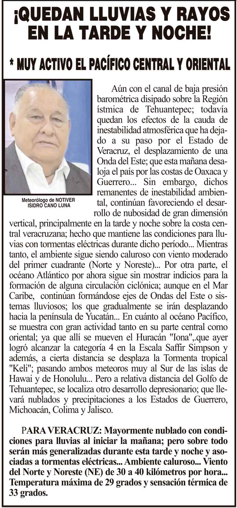 PRIMERA ¡QUEDAN LLUVIAS Y RAYOS EN LA TARDE Y NOCHE! - *MUY ACTIVO EL PACÍFICO CENTRAL Y ORIENTAL 30 julio 2025 Más Noticias LA PORTADA - VIERNES 5 DE DICIEMBRE 2025 ¡HOY SOPLA FRESCO Y DE FRENTE! - *PERO EL LUNES 8, ESTARÁ FUERTE Y CON LLUVIAS. LA ENCUESTA | - ME ESTÁS OYENDO INÚTIL?... ¡CON BAILONGOS QUIEREN AYUDAR A LOS DAMNIFICADOS DEL NORTE! - *El mismo Alor, toca los timbales ¡YA SE LA APROBARON! - REFORMA PARA LA FISCALÍA ESTATAL NOTI-MEME | - ASÍ ESTUVO EL INFORME... ¡MÁS DE 9 MIL MILLONES! - *Eso costaría cancelar en Veracruz al Grupo MAS ¡LE DAN LUZ VERDE! - DESDE GUATEMALA ¡EL CUARTO! ¡Y COM-PA-RE-CIÓ! - ÁNDALE...