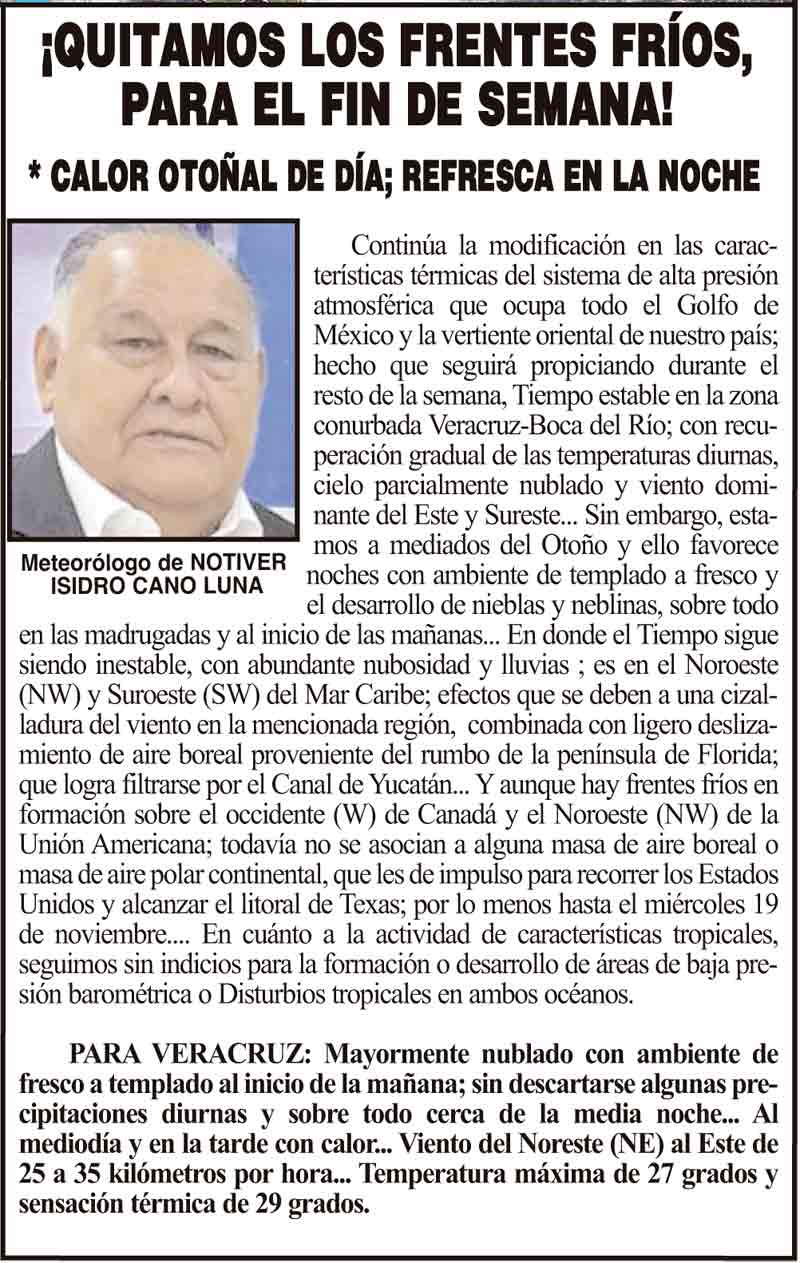 PRIMERA ¡QUITAMOS LOS FRENTES FRÍOS, PARA EL FIN DE SEMANA! - *CALOR OTOÑAL DE DÍA; REFRESCA EN LA NOCHE 13 noviembre 2025 Más Noticias LA PORTADA - JUEVES 23 DE ABRIL 2026 ¡TENDRÁ LA MARINA SÚPER BARCOS! ¡CLONAN CARTEL DE RECOMPENSA DE LA FGE! NOTI-MEME | - LOS OTROS CARTELES! ¡HOMENAJE A FIDEL Y ROSITA! - DEL PRI ¡PASAN LISTA LOS ALCALDES! - *En la Heroica Escuela Naval, ahí estuvieron Maryjose, Beto Cobos y Rosa María ¡ISLEÑO SE QUEDÓ CON CAMIONETÓN! - *Capibara no sabía, pero sí la esposa del director de Tránsito, Andrés Delgado ¡EXIGEN JUSTICIA! - LA COMUNIDAD MÉDICA LOS CARTONES ¡LOS VAN A INVESTIGAR! - *A policías estatales que dispararon a la doctora