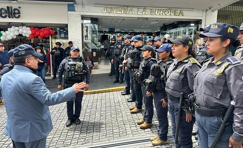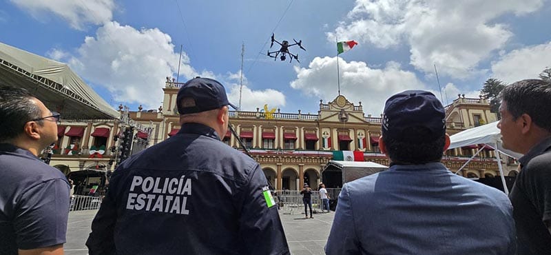Con el objetivo de verificar el correcto despliegue de oficiales de Policía Estatal en el primer cuadro de la ciudad, además de afinar los últimos detalles previo a la Celebración del grito de independencia, en la capital del Estado, donde participan 450 elementos en la vigilancia.