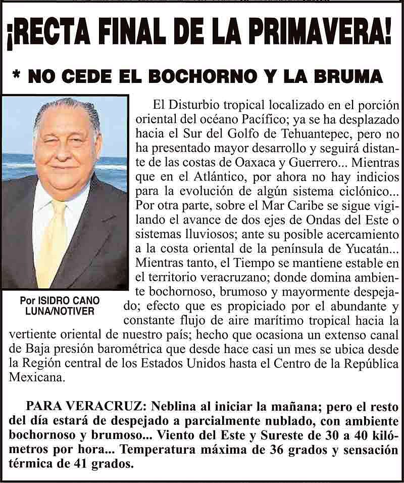 PRIMERA ¡RECTA FINAL DE LA PRIMAVERA! - *NO CEDE EL BOCHORNO Y LA BRUMA 2 junio 2024 Más Noticias ¡YA HAY TERNA! - RAÚL PEIMBERT EN LA LISTA ¡“CEMENTERIO”! - DE ULÚAS ¡INAUGURA PATY OTRA CALLE! ¡NO LE CREYERON! - Y LO BUSCAN NOTI-MEME | - ECOS DEL INFORME! ¡VERÓNICA VA CON NAHLE! - Y AL CONGRESO ¡“FAST TRACK”! - *Mientras el Mariner salía y entraba de Pajaritos en Coatzacoalcos ¡OPERATIVO LUPE-REYES! ¡MANDAN LA BILLETIZA! - *Corea manda 150 mil dólares ¡CRISTINA GANA LA ELECCIÓN!