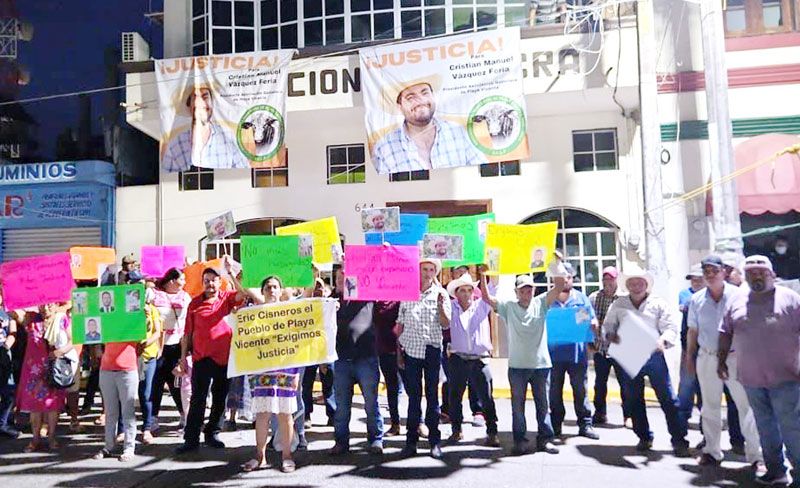 XALAPA, Ver- La presentación de su libro y firma de autógrafos del secretario de Gobierno, Eric Cisneros Burgos, en el festival “Playa Vicentino”, fue “reventada” por un numeroso grupo de ciudadanos, productores, ganaderos y residentes de Playa Vicente, quienes salieron a las calles en protesta la detención ilegal del presidente de la Ganadera, Christian Vázquez Feria, y otras cuatro personas.