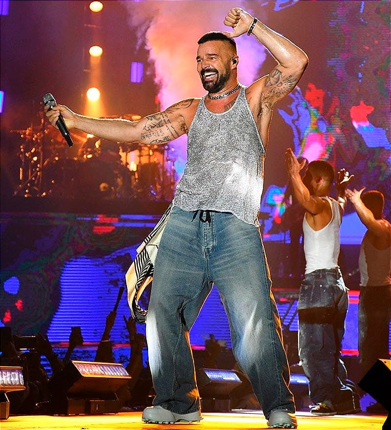 Ricky Martin abrió su concierto con el tema "Pégate un poco más", luego siguió con "María", en su espectáculo igual baila con una mujer que con un hombre, no pasa nada y se le perdona todo.