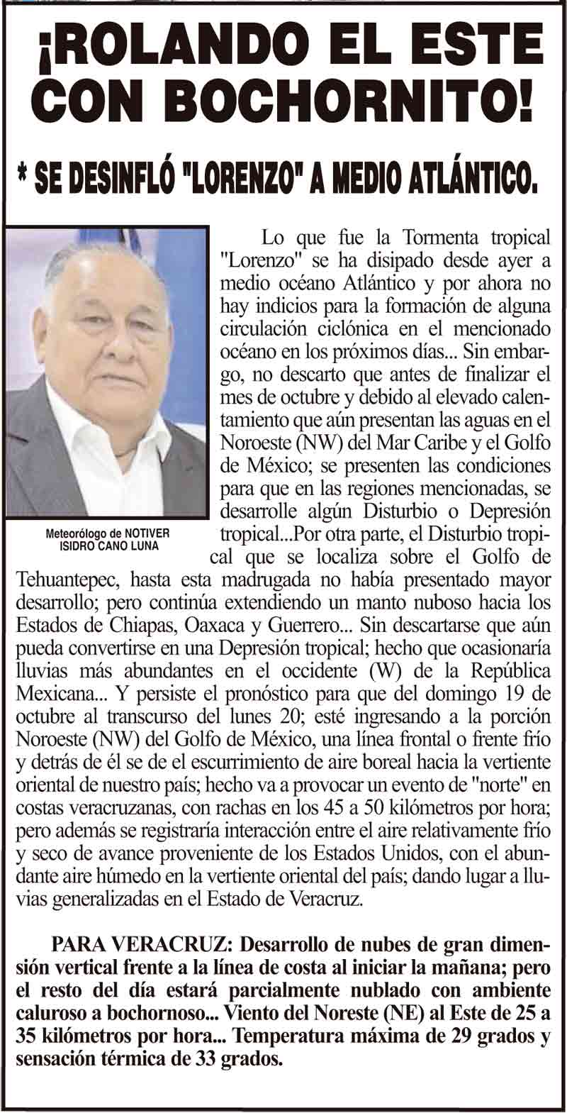 PRIMERA ¡ROLANDO EL ESTE CON BOCHORNITO! - *SE DESINFLÓ "LORENZO" A MEDIO ATLÁNTICO. 16 octubre 2025 Más Noticias LA ENCUESTA | - ME ESTÁS OYENDO INÚTIL?... ¡CON BAILONGOS QUIEREN AYUDAR A LOS DAMNIFICADOS DEL NORTE! - *El mismo Alor, toca los timbales ¡YA SE LA APROBARON! - REFORMA PARA LA FISCALÍA ESTATAL NOTI-MEME | - ASÍ ESTUVO EL INFORME... ¡MÁS DE 9 MIL MILLONES! - *Eso costaría cancelar en Veracruz al Grupo MAS ¡LE DAN LUZ VERDE! - DESDE GUATEMALA ¡EL CUARTO! ¡Y COM-PA-RE-CIÓ! - ÁNDALE... ¡NO SE VA LISBETH AURELIA! - *Descarta ir a la Fiscalía y que seguirá como magistrada ¡CREAN EL SÚPER MAÍZ!