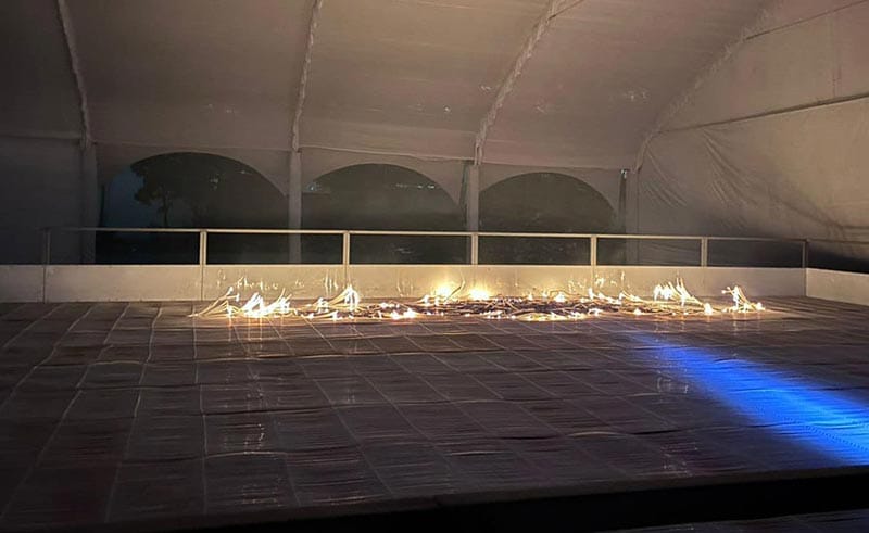 La pista de hielo que se instaló en la villa navideña del parque central, fue quemada durante la madrugada de este sábado 14 de diciembre. quedando dañada por el fuego que fue provocado por personas desconocidas.